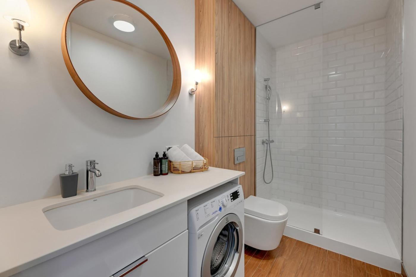 Apartament typu Deluxe z 1 sypialnią. This apartment consists of 1 living room, 1 separate bedroom and 1 bathroom with a shower and free toiletries. In the well-equipped kitchenette, guests will find a stovetop, a refrigerator, a dishwasher and kitchenware. Featuring a balcony with river views, this apartment also provides a washing machine and a flat-screen TV. The unit offers 2 beds. Apartament - 5 osobowy. Powierzchnia pokoju ok.: 40 mkw. ;