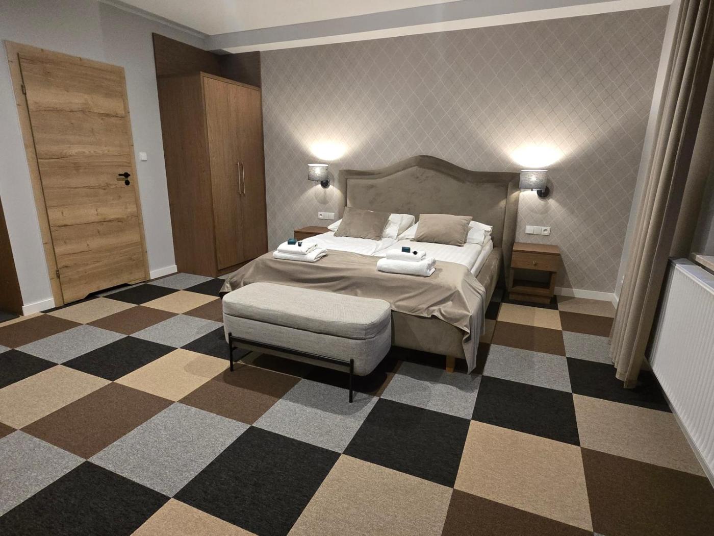 Pokój Dwuosobowy z 1 lub 2 łóżkami. Providing free toiletries, this twindouble room includes a private bathroom with a shower. The twindouble room provides a wardrobe, a sofa, a tiled floor, a flat-screen TV with cable channels, as well as garden views. Pokój Dwuosobowy z 1 lub 2 łóżkami - 2 osobowy. Powierzchnia pokoju ok.: 20 mkw. ;