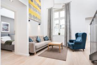 Dwupoziomowy Apartament rodzinny typu Suite. This spacious suite comprises 1 living room, 2 separate bedrooms and 2 bathrooms with a walk-in shower and free toiletries. In the fully equipped kitchen, guests will find a stovetop, a refrigerator, a dishwasher and kitchenware. The suite features parquet floors, a seating area with a flat-screen TV with cable channels, air conditioning, a tea and coffee maker, as well as a dining area. The unit offers 3 beds. Apartament typu Suite - 4 osobowy. Powierzchnia pokoju ok.: 75 mkw.