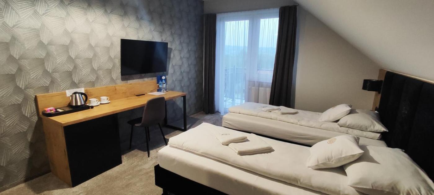 Pokój dwuosobowy. The double room features air conditioning, a tea and coffee maker, as well as a private bathroom boasting a walk-in shower and a hairdryer. The double room provides a wardrobe, a carpeted floor, heating and a flat-screen TV with cable channels. The unit has 2 beds. Pokój Dwuosobowy - 2 osobowy. Powierzchnia pokoju ok.: 18 mkw.