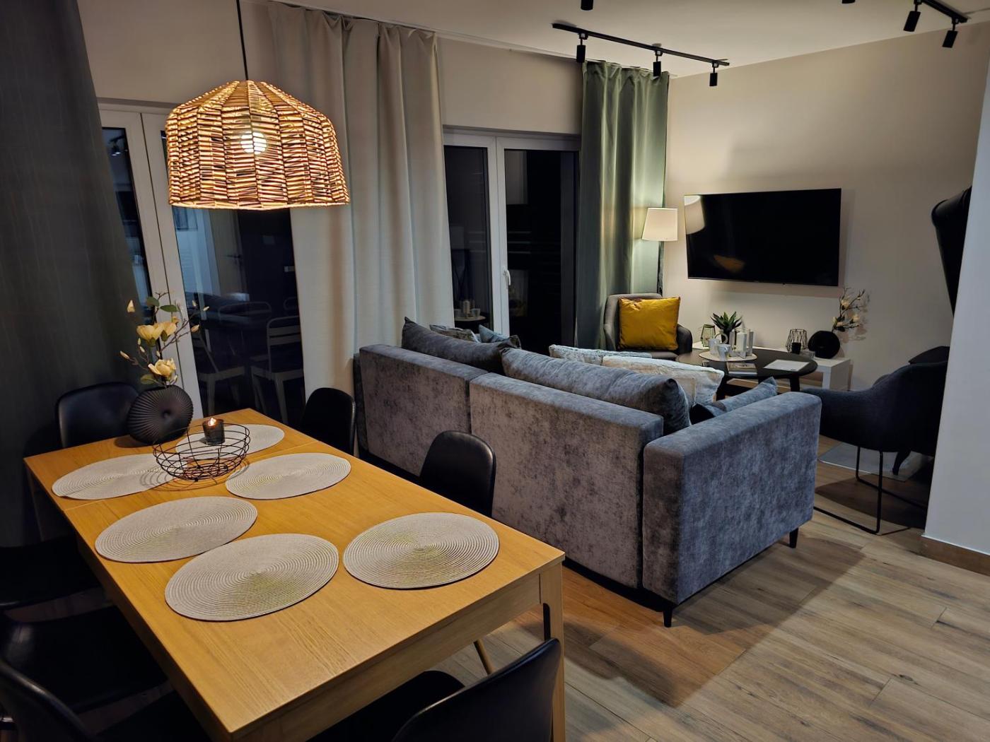 Domek z 3 sypialniami. This chalet features a sauna and a fireplace. Boasting a private entrance, this air-conditioned chalet features 1 living room, 3 separate bedrooms and 2 bathrooms with a shower and a hairdryer. Guests will find a stovetop, a refrigerator, a dishwasher and kitchenware in the fully equipped kitchen. The chalet also comes with a barbecue. The spacious chalet features a washing machine, soundproof walls, a tea and coffee maker as well as a terrace with garden views. The unit has 6 beds. Domek - 10 osobowy. Powierzchnia pokoju ok.: 85 mkw.