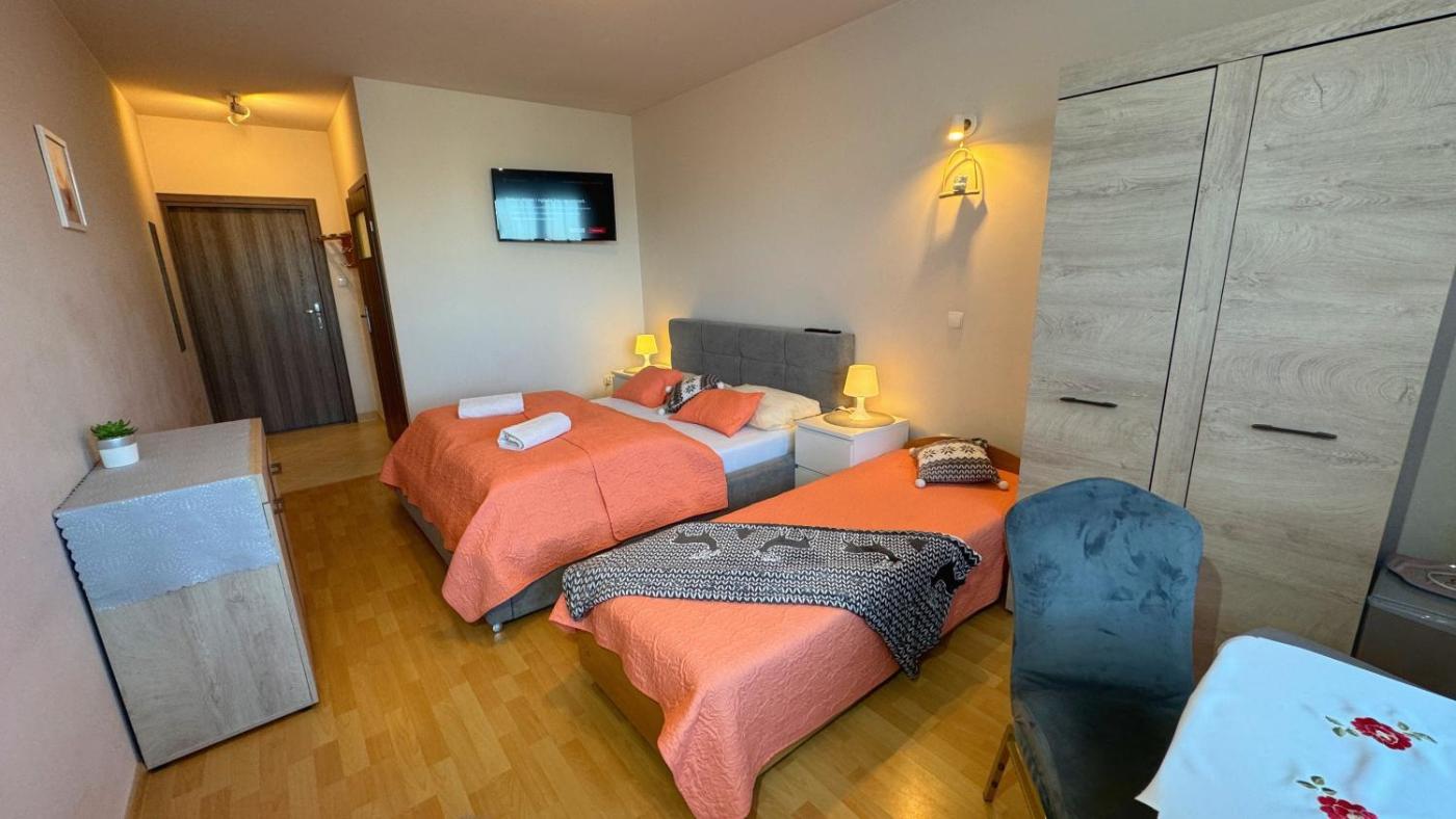 Mały pokój Dwuosobowy. The double room offers a wardrobe, an electric kettle, as well as a private bathroom boasting a shower and a hairdryer. This double room provides heating, a flat-screen TV and a balcony. The unit has 2 beds. Pokój Dwuosobowy - 3 osobowy. Powierzchnia pokoju ok.: 12 mkw. ;