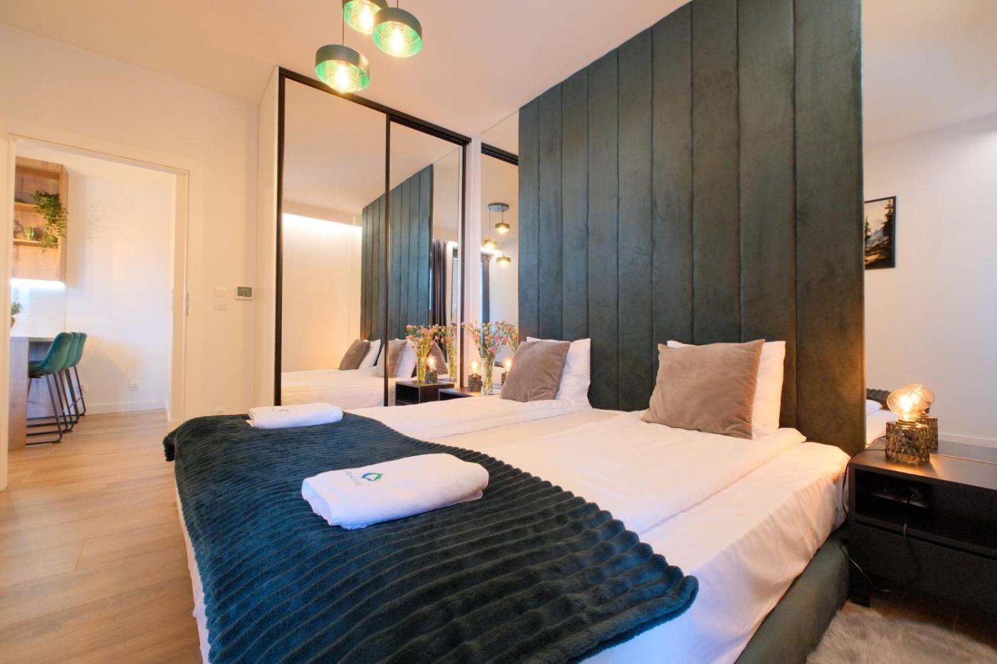 Oferta apartamentu obejmuje sypialnię (1), salon, aneks kuchenny z pełnym wyposażeniem, w tym lodówką i ekspresem do kawy, a także łazienkę (1) z prysznicem oraz bezpłatnym zestawem kosmetyków. W apartamencie zapewniono ręczniki i pościel.